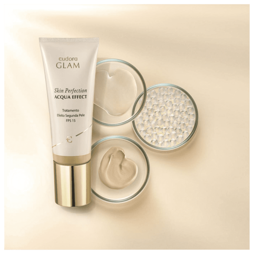 A base líquida Skin Perfection Acqua Effect 30ml conta com 45% de água em sua composição, para manter a hidratação de forma balanceada da pele com frescor.
